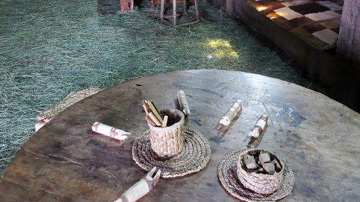 Не последнюю роль в формировании якутской культуры сыграли долгие зимние вечера, когда на улицу носа не высунешь. В такое время можно, скажем, плести мешок из конского волоса, или вырезать деревянную чашу, или чеканить серебряные украшения, а когда устанет рука и глаза заслезятся - слушать сказания или даже играть в настольные игры, наборы для которых, совсем такие же, как в музеях, и сейчас продают в магазинах. Вот например хаамыска с маленькими деревянными кубиками, которые надо хитро подбрасывать и ловить...