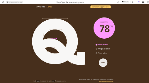 Работа дизайнера требует обширных знаний, отточенных навыков и терпения. Проверить это можно с помощью увлекательных игр. Они очень просты, полезны, но самое главное — невероятно увлекательны для всех людей, которые в той или иной мере связаны с дизайном и веб-разработкой. 1) Shape Type Игра для людей, занимающихся типографикой. В ней вам предстоит с помощью векторных кривых подправить испорченные кем-то буквы. В процессе игры к вам совершенно естественно придёт понимание, что каждая буква — это выдающееся произведение искусства...