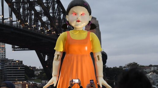 Добрый день, дорогие друзья! Многие знакомы с нашумевшим корейским сериалом «Игра в кальмара» режиссёра Хван Дон Хека от Netflix. Точная копия куклы из сериала была установлена в гавани Сиднея накануне Хэллоуина. Ценители сериала «Игра в кальмара» смогли лично на себе ощутить жуткий взгляд огромной куклы. Восторженные зрители собираются возле куклы и делятся своими впечатлениями и снимками в социальных сетях. Кукла-великан, известная по игре «Красный свет, зелёный свет», поражает поклонников своей реалистичностью и полностью функционирует...