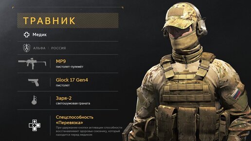 хотел поделиться своим положительным опытом в игре за российского оперативника медицинского подразделения «Травник» в игре Калибр.