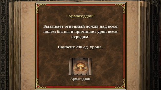 Да, боевое заклинание четвёртого круга Магии Огня под названием Армагеддон является самым разрушительным массовым заклинанием в игре... но применять вы его не будете. Ну ладно, безусловно, опытные игроки знают про разные тактики и возможности сделать так, чтобы общий урон, который огненным вихрем пройдётся по всему полю боя, не затронул ваши войска. Прежде всего, спасти вас может отряд из драконов (золотых и чёрных). Такая тактика называется «Драгогеддон»: нападаем, применяем Армагеддон, слышим мелодию...