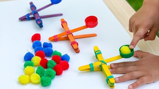 🤗 Мы сделали эту классическую самодельную катапульту из палочек для мороженого, резинок и бутылочных крышек. Ребенок узнает что чем сильнее они толкают, тем дальше перемещается предмет — успешный урок физики в дошкольном возрасте, особенно когда все, что требуется, - это горсть предметов домашнего обихода. Остались вопросы пишите в комментарии ниже 👇! МАТЕРИАЛЫ • 10 палочек эскимо • 4 резинки • 1 крышка от бутылки • предметы для запуска (например, помпоны, камни) КАК (1) Сложите 8 палочек вместе и свяжите их двумя резинками, по одной на каждом конце...