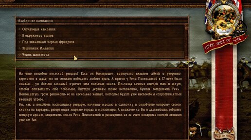 Одна из самый первых, и, наверное, самых простых кампаний в игре «Казаки. Последний довод королей» - это «Честь Шляхтича». Самой первой миссией в данной кампании является «Южные провинции». Пройти ее достаточно легко, если знать, что нужно сделать на первом «этапе» ее прохождения. Об этом вам и расскажет эта статья. В вашем распоряжении с самого начала всего лишь один небольшой отряд стрелков и ваш командир. Чуть южнее от места старта находится отряд из 4 пикинеров. Лучше сразу согласиться на их требования, иначе придется сражаться с ними...