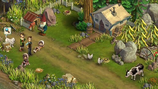 Здравствуйте, дорогие друзья! С вами я, Олег Кучин и мы уже в игре! Сейчас я покажу вам, что вас ждет в самом начале. Это станция одного моего доброго соседа и я покажу вам, что здесь есть для начала. Это он со своей гостьей и два эскимоса, Немая Тень и Глухое Эхо. Их так зовут, у них тоже есть свои станции, но они постоянно находятся с вами. Они работают на ваших лесопилке и в каменоломне и их не нужно нанимать, они работают бесплатно. Также здесь находится лачуга моего соседа, несколько грядок, две курицы и одна корова...