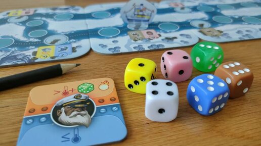 Игра с одной из моих самых нелюбимых механик roll & write. В игре есть трек, по которому двигается корабль. Этот трек служит тригером конца игры и ориентиром на дальнейшие экскурсии по деревням. У каждого игрока есть листок, в котором он будет отмечать выпавшие значения на кубиках. Как только один горизонтальный ряд будет полностью зачеркнут, у вас появится единоразовый бонус на зачеркивание дополнительных клеток определенных цветов. Также за каждый полностью зачеркнутый ряд вы получаете один билет...