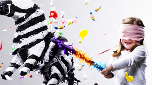 Пиньята - это мексиканская полая игрушка довольно крупных размеров из картона или папье-маше. Своей формой пиньята воспроизводит фигуры животных (обычно лошадей) или геометрические фигуры, которые наполняются различными угощениями и сюрпризами. Правила игры: Пиньяту подвешивают, одному из детей дают в руки палку, завязывают глаза и (необязательно) раскручивают на месте, остальные отходят на безопасное расстояние. Ее участь на празднике — быть разбитой, после чего гости активно и весело собирают содержимое...