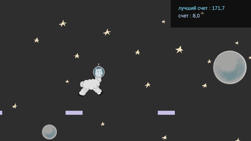 На изображении игра про космическую альпаку, и она была сделана за 4.5 часа. Задумка была следующая: запустить новую рубрику под названием "Игра одним дублем", где на видео записывается полный процесс создания небольшой игры с нуля (рисовка, звуки, музыка, код). Но, к сожалению, была неправильно настроена записывающая программа, и на видео весь процесс создания был перекрыт окном какой-то левой папки. Испорченное видео, ради которого все и затевалось, было удалено, но хотя бы остался "утешительный приз" в виде игры про космическую альпаку...