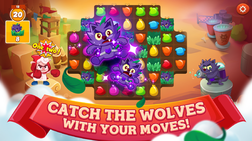 Sheepong — головоломка "Три в вряд"с участием персонажей из сказки Красная шапочка