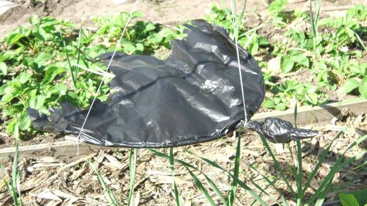 Летающее пугало-ворону делаю из мусорного пакета — и клубника с черешней достается мне, а не птицам