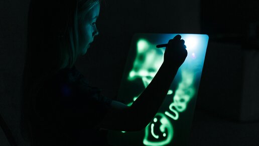 Во-первых, рисуя светом, каждый ребёнок может стать волшебником. Дети в восторге от светящихся в темноте рисунков, которые создают сами. Во-вторых, на одном планшете ребенок может создать бесконечные количество световых рисунков. При этом такое творчество не пачкает одежду и все вокруг, как фломастеры, маркеры и краски. Рисование светом помогает родителям с легкостью взаимодействовать с детьми 1. Родители и дети могут использовать рисование светом как средство, чтобы открыть диалог и общаться между собой...