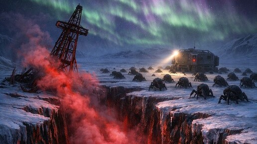 А потом кабель, на котором висела камера, натянулся, как струна, и с диким скрежетом лопнул. Экран погас, связь оборвалась. Существо проснулось окончательно. В ту же секунду земля под нашими ногами снова содрогнулась. Но на этот раз это был не рёв. Это был целенаправленный, мощный удар изнутри. Ледяной панцирь под нашим лагерем треснул. Огромная трещина шириной в несколько метров прошла прямо через центр нашей станции, поглотив один из тягачей и модуль с припасами. Мы стояли на раскалывающейся льдине, под которой просыпался Левиафан...