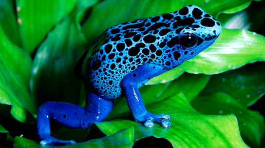 Голубая ядовитая лягушка-дротик - это маленькая лягушка ярко-синего цвета. Спина и верхняя часть головы светло-голубого цвета, а живот и ноги тёмно-синего цвета. Тёмно-синие и чёрные пятна покрывают тело лягушки, в первую очередь спину и голову. Самки немного крупнее самцов, но внешне они похожи. Голубая ядовитая лягушка-дротик имеет длину 2,5–3,8 сантиметра и весит около 8,5 грамм. Адаптации. Размножаются в феврале и марте. Самка откладывает 5-10 яиц за раз. Головастики вылупляются через 14-18 дней после откладки яиц...