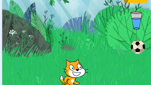 Сегодня мы с вами создадим игру "Питомец" в среде программирования Scratch Для этого нам понадобится: Расположите элементы так, как показано на рисунке ниже:⬇️ Как вы уже поняли нам нужно будет кормить питомца, поить и играть с ним. Когда питомец будет играть в мяч, его силы будут уменьшаться и его нужно будет кормить...