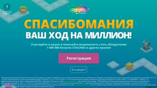 СБЕРБАНК РОССИИ в рамках своей программы лояльности запустил игру «Спасибомания» с миллионами призов. Беспрецедентная, как подчеркивают в банке, акция действует до 31 января 2018 года включительно. Для участия необходимо пройти регистрацию на сайте game...