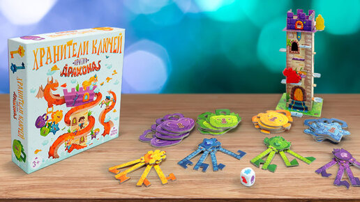 Кооперативная или соревновательная? Вы за какой вариант игры? "Хранители ключей против дракона" совмещает в себе оба варианта🙈. Игрокам совместными усилиями необходимо спасти принцессу от дракона. Принцесса находится на вершине башни. Участники по очереди кидают кубик и в соответствии с выпавшим цветом подбирают ключ к замку. Если ключ подобран верно - отлично, вы на шаг ближе к победе 👌. Выпавший на кубике дракон - поднимается на ступеньку ближе к принцессе. Всего таких ступенек 10. Задача игроков открыть 16 замков ключами прежде, чем дракон доберется до принцессы...