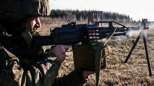 Стрельба с пулемёта на военном полигоне. Вооружение России
