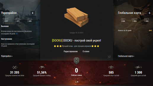 Всем привет, друзья. Хотел немного отвлечься от "обзоров" на танки и прочие механики и сделать небольшую, так скажем, рекламку своего клана. Мой клан DOCKU существует уже 4 года. За это время уже успели прокачать укрепрайон до 10 уровня. Но так как по личным причинам пришлось покинуть это игру больше чем на год, клан с начала 2022 года простаивал... Сейчас в клане только 4 активных игрока из общего количества в 6 игроков. И я с вашей помощью хотел бы исправить эту ситуацию. Мы рады абсолютно всем игрокам в клане...