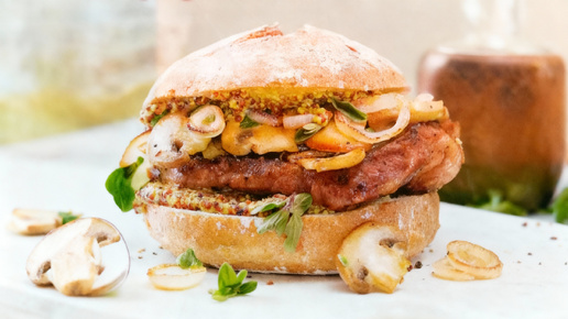 Любители сочных бургеров! Научитесь готовить ржаные бургеры со свиными шницелями и шампиньонами и вы забудете как тратить деньги в кафе!