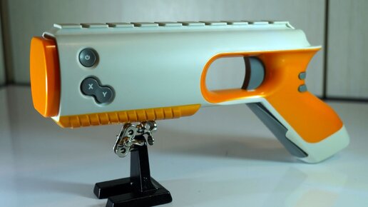Превосходно подходит для стрелялок от первого лица или шутеров. Лучше всего неподготовленный игрок справится с простыми аркадами и классическими играми в стиле ретро игровых приставок Денди и подобных. Он имеет гироскопический сенсор, определяющий положение в пространстве, кнопки для назначения игровых команд. Калибровка гироскопа происходит автоматически когда пистолет находится в состоянии покоя. Игрушечный пистолет также может выполнять функции мыши для управления курсором и нажатия кнопок. Им можно рисовать в программе Paint 3D в Windows, использовать в обучающих и развивающих играх...