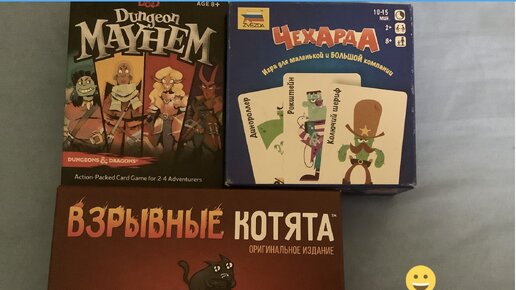 В этом топе я расскажу от 3 самых интересных игра на мой взгляд, которые подойдут для того что-бы сыграть в компании друзей. 3 место: Взрывные котята Всё очень просто, у каждого игрока есть на руке несколько карт действий. В колоде есть такие-же действия, а есть, взрывные котята. В свой ход мы сначала можем сыграть любое число карт, а затем обязаны взять карту с верха колоды. Если действия, забираем на руку. А если взрывной котёнок, сбрасываем карту «обезвредь» или, покидаем игру. Кто последний остался, тот и победил...