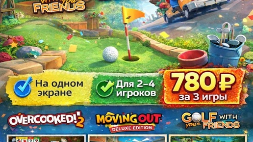 💥 Идеальный набор для вечера с друзьями или семьёй 👉 смех, хаос и куча эмоций гарантированы 😄 🍔 Overcooked! 2 Готовьте блюда в безумных кухнях и не ссорьтесь 😅 📦 Moving Out Deluxe Edition Переезды, диваны и полный хаос — играть вдвоём в разы веселее ⛳️ Golf With Your Friends Весёлый гольф с ловушками и трэшем 💰 Всего за комплект 780 руб...