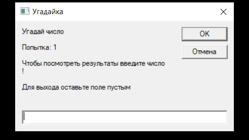 Всем привет, я недавно нашёл интересную статью про игру на VBS. Читать её можно здесь И так вот сама игра: Игра написана в блокноте как и другие скрипты. Вот код: Set y = CreateObject("Scripting.FileSystemObject") Set y = Nothing Do a = 0 u = 0 Randomize Number = Int((RND*99)+1) MsgBox "Я загадал число от 1 до 100, попробуй отгадать",64,"Угадайка" Do a = a + 1 c = InputBox("Угадай число" & vbCrLf & vbCrLf & "Попытка: " & a & vbCrLf & vbCrLf & "Чтобы посмотреть результаты введите число !" & vbCrLf...