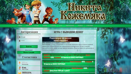 Экономические игры давно заняли свою отдельную нишу в интернет-пространстве. К сожалению большая их часть - это обыкновенные лохотроны, за которыми владельцы прячут финансовые пирамиды. Игра Никита Кожемяка - не исключение. Администрация обещает сразу и много: стабильный ежедневный доход, надежную онлайн-поддержку и т д. Самое заманчивое, что уже через 3 дня доходы от покупки пиксельных героев мультика должны взлететь буквально до небес. Вывод средств возможен практическим всеми известными и удобными способами;банковские карты или электронный кошельки...