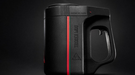 Новая технология приготовления напитков: эта кружка с игровым контроллером сохраняет напиток теплым и оснащена кнопкой включения, так что вы можете пить и стрелять одновременно "Trigger Mug интегрирует...