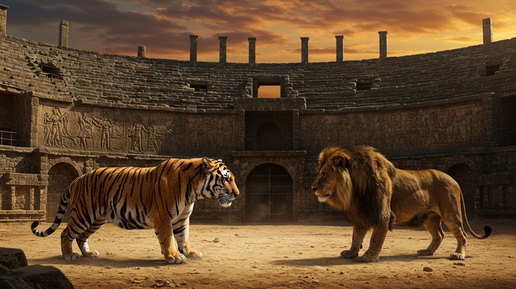 Знаете, какие шоу были популярны в Древнем Риме? Нет, не «Дом-2» и не гладиаторы с копьями. Настоящий хит — бой льва против тигра. Зрелище не для слабонервных. И знаете, кто чаще побеждал? Тигр. Да-да, именно полосатый хищник из джунглей. Сейчас расскажу, почему. 📜 Как так вышло, что львы и тигры дрались в Риме? В Древнем Риме любили зрелища. Колизей, амфитеатры, дикая публика и гладиаторы — всё это было. Но со временем зрителям стало скучно просто смотреть, как люди рубятся на мечах. Хотелось экзотики и крови...
