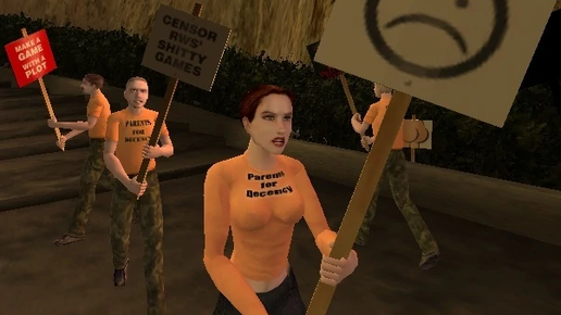 Слово "митинг" стало красной тряпкой в наше неспокойное время. В видеоиграх различных акций протеста тоже предостаточно. Сегодня мы рассмотрим немного таких примеров. От незамысловатых пикетов, до массовых восстаний, которые не всегда заканчивались хорошо. Осторожно, могут быть спойлеры! Postal 2 По сюжету нам нужно заглянуть к бывшему работодателю. Иронично, что Чуваку надо добраться до офиса Running With Scissors - разработчика игры. Возле здания уже собрались недовольные видеоиграми с соответствующими выкриками и табличками...