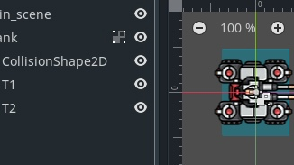 В этой небольшой статье будем создавать управления для танка. Игра будет с видом сверху. Башня танка будет всегда указывать на курсор мышки. А управлять танком будем через клавиши WASD. Для начала скинем проект наши спрайты. В нашем случае — сама основа танка и отдельно башня. В годо создаем новую ноду Kinematic2D (переименуем в tank) . Под неё кидаем спрайты и колижен шеип.