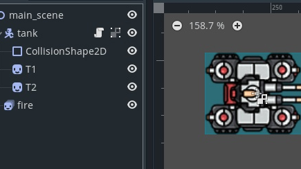 Продолжаем развивать нашу сценку. В этой статье будем добавлять стрельбу из танка. Если вы пропустили первую часть , то она лежит вот тут. Для этого потребуется снаряд (у нас две пушки , так что будет двойной снаряд !) и эффект взрыва. Для начала займемся взрывом. Добавляем в проект ноду AnimatedSprite, переименуем её сразу в «fire» и добавим неё наш спрайтщит взрыва. Сразу сделаем несколько правок: 1) Переименуем анимацию в «fire» 2) Добавим в конце пустой кадр. 3) Изменим частоту кадров на 25. 4) Снимем галочку с LOOP, для чтого чтобы наша анимация не игралась постоянно...