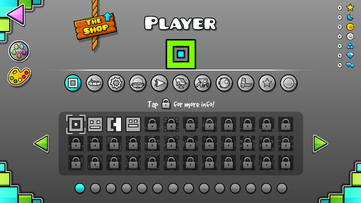 Персонаж Icons Меню иконок Тизер иконок обновления 1.8 Персонаж (англ. Character) — главный герой серии игр Geometry Dash. Описание Персонаж выглядит как квадрат или любая другая иконка с внутренними вариациями, высотой и шириной в одну клетку. Уязвим к шипам, а также к любым другим препятствиям на пути. Внешний вид и цвет героя изменяемы — достаточно лишь зайти в меню персонажа (главное меню, большая кнопка слева). Чтобы получить новые цвета и иконки, надо выполнять достижения, вводить секретные коды в хранилищах или покупать их в магазинах за сферы маны...