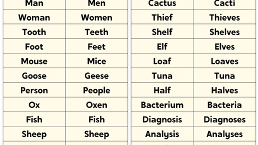 Множественное число существительных | Не всегда добавляем -s/-es? Слова-исключения
