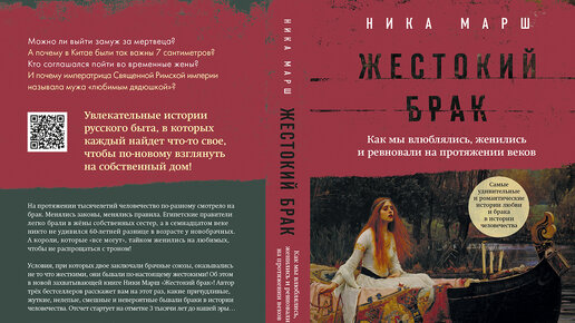 А почему он такой? Об этом я расскажу в своей новой книге, которая так и называется! А шрифтом помельче добавлено важное дополнение: «Как мы влюблялись, женились и ревновали на протяжении веков». «Жестокий брак» — это чтение как раз для тех, кто любит мой канал! Потому что я впервые собрала в одной книге много-много историй любви. Мне давно хотелось это сделать: рассказать, как находили себе пару люди в разные времена – от Древнего Египта до наших дней. В моей новой книге 23 главы, которые охватывают невероятный временной период: от 2 тысячелетия до нашей эры до конца XX века...