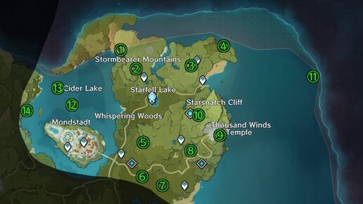Где найти все анемокулы в Genshin Impact