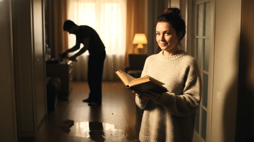 Алёна стояла в луже. Лужа была тёплая, пахла ржавчиной и чуть-чуть кошкой, хотя кошки у неё не было уже лет шесть. Сверху, с потолка, капало ровно и методично, как метроном у соседки-пианистки. - Ну что вы стоите, - сказал Костя из ванной. - Снимайте тапки, намокнете. Алёна сняла тапки. Почему-то от этой фразы у неё внутри что-то щёлкнуло. Тихо так, как щёлкает выключатель в коридоре, когда ищешь его в темноте и наконец нащупываешь. Она двенадцать лет ждала, что однажды кто-нибудь скажет ей что-то правильное...