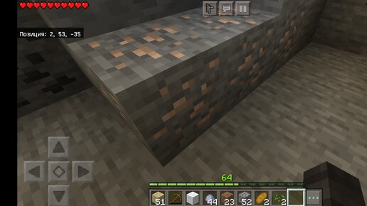 Нашёл 11(!) блоков железной руды. Обкопал, забрал и пошёл на базу.