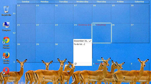 Для всех кто привык планировать дела на каждый день, неделю или месяц, как известно, необходимо куда-то записывать все свои планы, и по чему бы их не записывать в календарь для рабочего стала Desktop Calendar. Данный календарь располагается прямо на рабочем столе, что очень удобно, так как пропустить какую ни будь запись трудно, ввиду того, что этот календарь всегда на виду. При этом, при желании, степень его заметности можно установить в настройках программы, убрав прозрачность вообще или установив её до 90%...