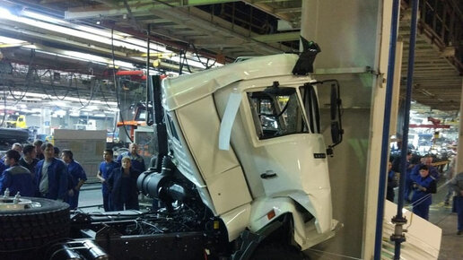 На автозаводе КАМАЗ в Набережных Челнах произошло ДТП. Водитель грузовика взял на таран опору в одном из цехов предприятия. Судя по опубликованным фотографиям, кабинный модуль оказался настолько сильно деформирован от удара, что восстановлению не подлежит...