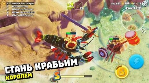 Большая часть игр в жанре королевская битва — это боевики с приближенными к реальным условиями боя и настоящим оружием. Fortnite и ему подобные делают упор на веселую атмосферу и использует мультяшную графику. Есть несколько королевских битв со сражениями с помощью оружия ближнего боя, но они не очень популярны. Но King of Crabs – это по-настоящему уникальная королевская битва, где вам предстоит сразиться с 99 другими крабами за то, чтобы стать Королем крабов...