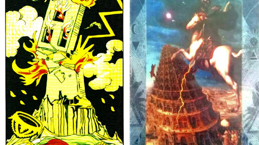 Тема 16 Аркана - это разрушение Вавилонской башни. Случается, что человек, обнаружив в своей Матрице Судьбы (или вообще, просто в раскладе Таро), 16 Аркан - Башню - впадает буквально в ужас. Ведь, стереотипное толкование, закрепившееся за Башней - это разрушение, причём обязательно со шрапнелью, и от осколков не увернуться никому, кто оказался даже поблизости к эпицентру крушения. Нередко можно встретить приписку к данному Аркану, что это символ "духовного преображения". И по замыслу происходит оно как раз через стойкое переживание разного рода испытаний...