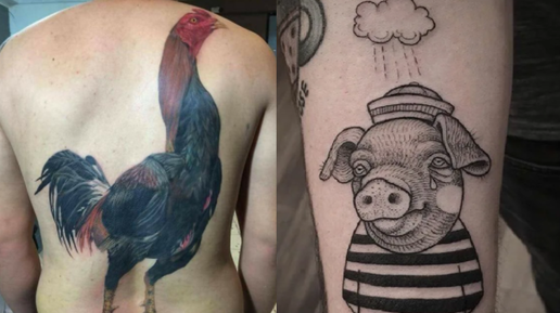 Татуировка - важная часть опозновательных знаков тюремной культуры. Своего рода QR-код системы мира за решеткой, что позволяет быстро считывать - кто пред тобою. Неудивительно, что часть наколок имеет далеко неприглядное значение, идентифицирующее своего обладателя не с лучшей стороны. И вот вам лишь некоторые примеры нахалок, коих существует великое множество, различающихся по стилю, форме, размеру. Одна из самых таких простых наколок - изображение петуха. Нередко цветное и особо крупное. Сами понимаете, что означает - самое низкое положение во всей хитрой системе тюремной иерархии...