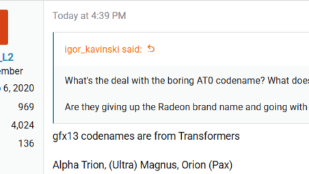 Внутренние кодовые названия чипов AMD обычно появляются перед самым выпуском продуктов. AMD редко использует эти названия, за исключением внутренних изменений в разработке, которые часто появляются в программном обеспечении с открытым исходным кодом перед выпуском оборудования. Однако новый слух может помочь объяснить недавние сообщения о кодовых названиях RDNA 5. Графические процессоры AMD Radeon следующего поколения на базе архитектуры RDNA5 могут иметь кодовые названия, вдохновлённые персонажами франшизы «Трансформеры»...
