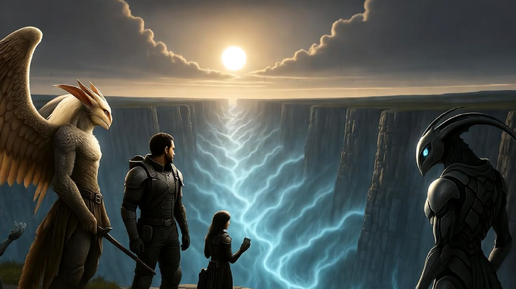 Решение о создании альянса повисло в воздухе, но ему нужен был конкретный план, способный сплотить таких разных существ перед лицом общей угрозы. И этот план родился из древних свитков аэриан, которые жрецы принесли в зал Совета после шокирующего уничтожения острова. Пророчество о «Пришельце из-за Небес» было лишь его началом. В более полной версии говорилось, что Тил’На’Арр приведёт «детей небес и детей земли» к «Сердцу, что бьётся в груди мира», и только его сила сможет противостоять «Тени из Бездны» — тому самому оружию, что теперь было в руках Сатрапа...