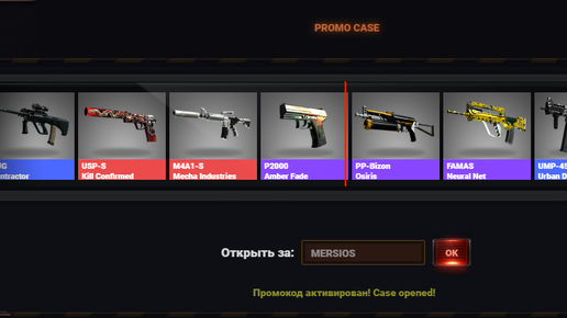 Переходим по ссылке, вводим промо код и выводим деньги на свой стим!!! Сайт: https://gocs.pro/pp130219 Промо код: MERSIOS