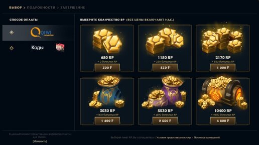 Обновление 2024: QIWI больше не работает, поэтому по ссылке актуальный способ пополнить баланс LoL в России. Что такое Riot Points RP или Риот Поинтс это игровая валюта в League of Legends за которую можно покупать скины, сундуки, эмоции и другой контент. Что можно купить за RP Как получить Риот Поинтс Получить РП можно только купив их за реальные деньги. К сожалению, бесплатно приобрести RP в League of Legends невозможно. Поэтому остерегайтесь мошенников и помните — единственный вариант это донат...