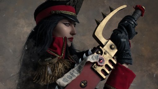 Модель примерила форму комиссара Имперской Гвардии из Warhammer 40000