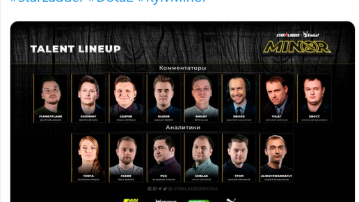 Организаторы StarLadder ImbaTV Dota 2 в своем Twitter-аккаунте представили список русскоязычных комментаторов и аналитиков, которые будут освещать данный турнир А это