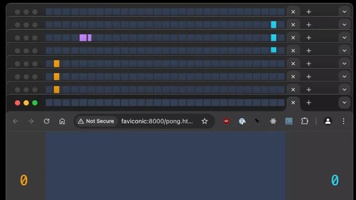 Разработчик-энтузиаст создал полностью играбельную версию Ping-Pong, отображаемую на 240 вкладках (фавиконах) браузера Google Chrome. Пользователь сети с ником Nolen Royalty назвал свое творение «Faviconic Pong», взяв пример с другой необычной реализации игры Flappy Bird, которая игралась исключительно в пределах одного фавикона. Faviconic Pong поднялась в этом отношении на несколько ступеней выше. Игра по сути распределяет действие между главным окном Chrome, отображающим нижнюю половину экрана и массивом из 240 значков вкладок, обрабатывающего верхнюю часть...